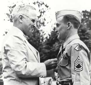 On Memorial Day of 1946 the former Technical Sergeant Beauford T. Anderson, now a civilian, received the Medal of Honor from President Harry Truman. The ceremony was on the White House grounds, and Mr. Anderson was in the company of four other Medal-of-Honor recipients. Mr. Anderson was the first member of his regiment to receive the Medal of Honor. He was one of two members of the 96th Infantry Division to receive the Medal of Honor as a result of the fighting for Kakazu on Okinawa. All told, five members of the 96th Division received the Medal of Honor for combat in the Pacific. Only two of these men — Beauford Anderson and Clarance Craft — survived the war.